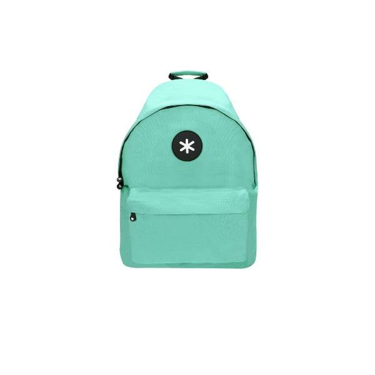 Stilrent, mintgrønt design med tydelig frontlommeHovedrum og praktisk forlomme til hurtig organiseringBærestrop øverst – nem at gribe og hænge opVelegnet som skoletaske og let hverdagsrygsækStilren skoletaske til hverdagAntartik Skoletaske TK29 er en enke