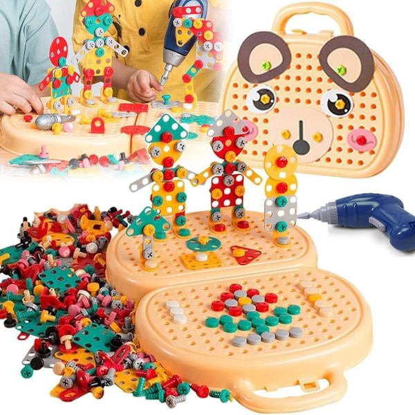 [Magisk Montessori Legetøjsværktøjskasse Boremaskine]: Boremaskinesæt til børn inkluderer en legetøjs skruetrækker, sjov skruenøgle og realistisk elektrisk boremaskine! Se dem vokse i selvtillid og lære at fastgøre, adskille og fuldføre givende opgaver på egen hånd! Boremaskinesæt til børn 3-10 år.[Premium Materiale]: Vores kreative mosaikboremaskinesæt er lavet af høj kvalitet ABS plastik, kanterne er polerede. Legetøjsboremaskinen drives af AA batterier (ikke inkluderet), hastigheden er langsom, ingen grund til at bekymre sig om at skade barnet.[Kreativ Mosaik Design Puslesæt]: 205 stykker boremaskine og skruer sæt kombinerer uddannelse og leg, der giver børn mulighed for at udforske principperne for konstruktionsteknik, mens de leger. Brug elektriske boremaskiner og skruetrækkere til at designe og bygge dine egne imaginære modeller ved at kombinere skruer og møtrikker.[Udvikle STEM Færdigheder]: Boremaskine mosaik sæt perfekt til at give din lille ingeniør et spring i STEM færdigheder! Hvert børns boremaskine og skruesæt maksimerer deres rumlige bevidsthed, logisk problemløsning, visualisering & planlægning, finmotorik & hundredvis af andre essentielle kognitive færdigheder gennem leg med STEM byggelegetøj![Perfekt Gave Til Børn]: Dette legetøj kan bringe en masse sjov til børn, en smuk feriegave til jul, halloween, thanksgiving, fødselsdag!