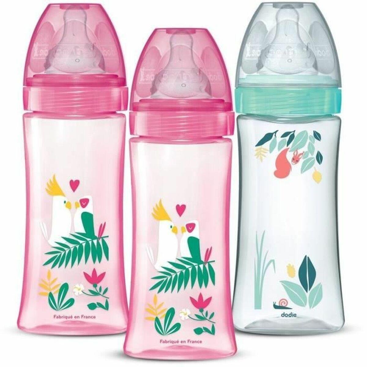Dodie sutteflaske Bird, pink – 330 ml, anti-kolik, BPA-fri