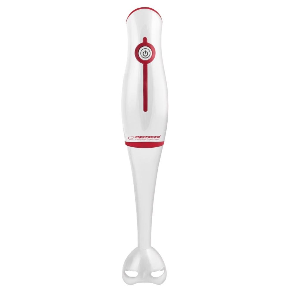 En stavblender med ergonomisk håndtag, der hjælper dig med at blande alt fra smoothies til suppe. – Moderne stavblender – Ergonomisk håndtag Specifikationer: Farve: Hvid, rød Materiale: Plast, rustfrit stål Mål, emballage: 40 x 7 x 7 cm Effekt: 250W Spænding: 220-240V Frekvens: 50 / 60Hz Pakken indeholder: 1 x stavblender