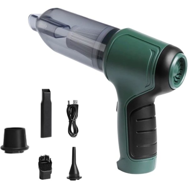 Hold din bil og dit hjem skinnende rent! Vores ledningsfri smarte støvsuger er det perfekte værktøj til at rengøre din bil og dit hjem! At fjerne snavs og støv bliver superenkelt og hurtigt!Med 9000PA kraftig sugeevne og lavt støjniveau: Denne genopladelige bilstøvsuger kan opnå hurtigste rengøring og nemt fjerne dyrehår, støv, skidt og mere. Den bruger en supermotor med stærk sugeevne. Og lyden er lavere end 84dB. Den er meget nyttig til daglig rengøring.Hurtig opladning og lang arbejdstid: Denne mini støvsuger har et batteri med stor kapacitet, som kan bruges kontinuerligt i cirka 30 minutter efter en fuld opladning på 3-4 timer.Ledningsfri design og bærbarhed: Denne ledningsfri bilstøvsuger er let, den er lille og kompakt og kan flyttes som du vil. Den er også meget cool og stilfuld. Dette er nyttigt til hurtig opsamling og let rengøring, da den er lille og let, hvilket gør den nem at opbevare og rengøre uden at skulle bruge en tung almindelig støvsuger.Brugermanual: Kontroller om den er fuldt opladet. Tænd bare for strømafbryderen. Udskift forskellige mundstykker til brug afhængigt af forskellige lejligheder. Dette produkt er en våd- og tørstøvsuger. Når du suger vand op, bør du åbne frontdækslet i tide for at tømme vandet. Det genopladelige batteris USB viser rødt for normal opladning og grønt for fuldt opladet. Kan også bruges til kompressionsposer. Opladningstiden er cirka 3-4 timer, og den kan holde i cirka 30 minutter, når den er fuldt opladet.