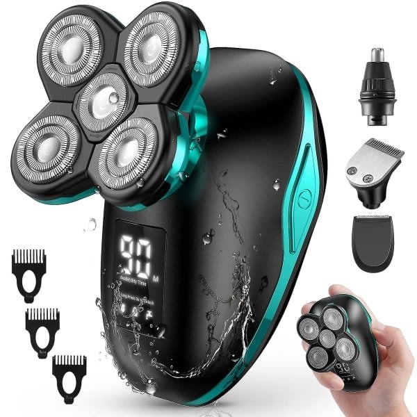 Glat og tættere barbering: 6D retningsfleksibelt hoved kan automatisk tilpasse sig hver kurve i ansigtet og nakken, tilpasse sig ansigtets konturer, øge kontaktfladen og barbere hurtigere. Den elektriske barbermaskine beskytter din hud og giver dig en behagelig, glat og fuldstændig barberingsoplevelse. nUSB-opladning & LED-indikator: Barbermaskinen til skaldede hoveder er udstyret med et højkvalitets lithium-ion-batteri, der giver op til 90 minutters trådløs barberingstid på en enkelt opladning. Den intuitive LED-display viser nem brug og tid, så du ved, hvornår batteriet er næsten tomt. nSUPER FUNKTIONELT 5 I 1 Grooming Kit: Vores tørre barbermaskine til mænd har 5 aftagelige tilbehør, herunder en elektrisk barbermaskine, en hårtrimmer med 3-5-7 mm guidekamme, en næsehårstrimmer og en bakkenbartstrimmer for at tilfredsstille hele dit ansigt og krops behov. Når du vil barbere, trimme og rengøre, vil du nyde glat hud, fri for hår og irritation. nLet at rengøre: Tryk forsigtigt på hovedbeskyttelsen og rengør den med vand. Efter opgradering til IPX7 vandtæt kan hele den elektriske barbermaskine blødgøres i vand i 30 minutter. Du kan også barbere dig i brusebadet. Let at bruge, en ideel gave. nLet at bruge: lille, let at holde, bærbar; 3 sekunders berøringsskærm til rejselås for at forhindre utilsigtet åbning. -Hvis du ikke ved, hvordan du skifter hoved eller rengør barberhovedet, bedes du kontakte os. Vi hjælper dig med at lære, hvordan du bruger barbermaskiner og andet tilbehør så hurtigt som muligt./QDD