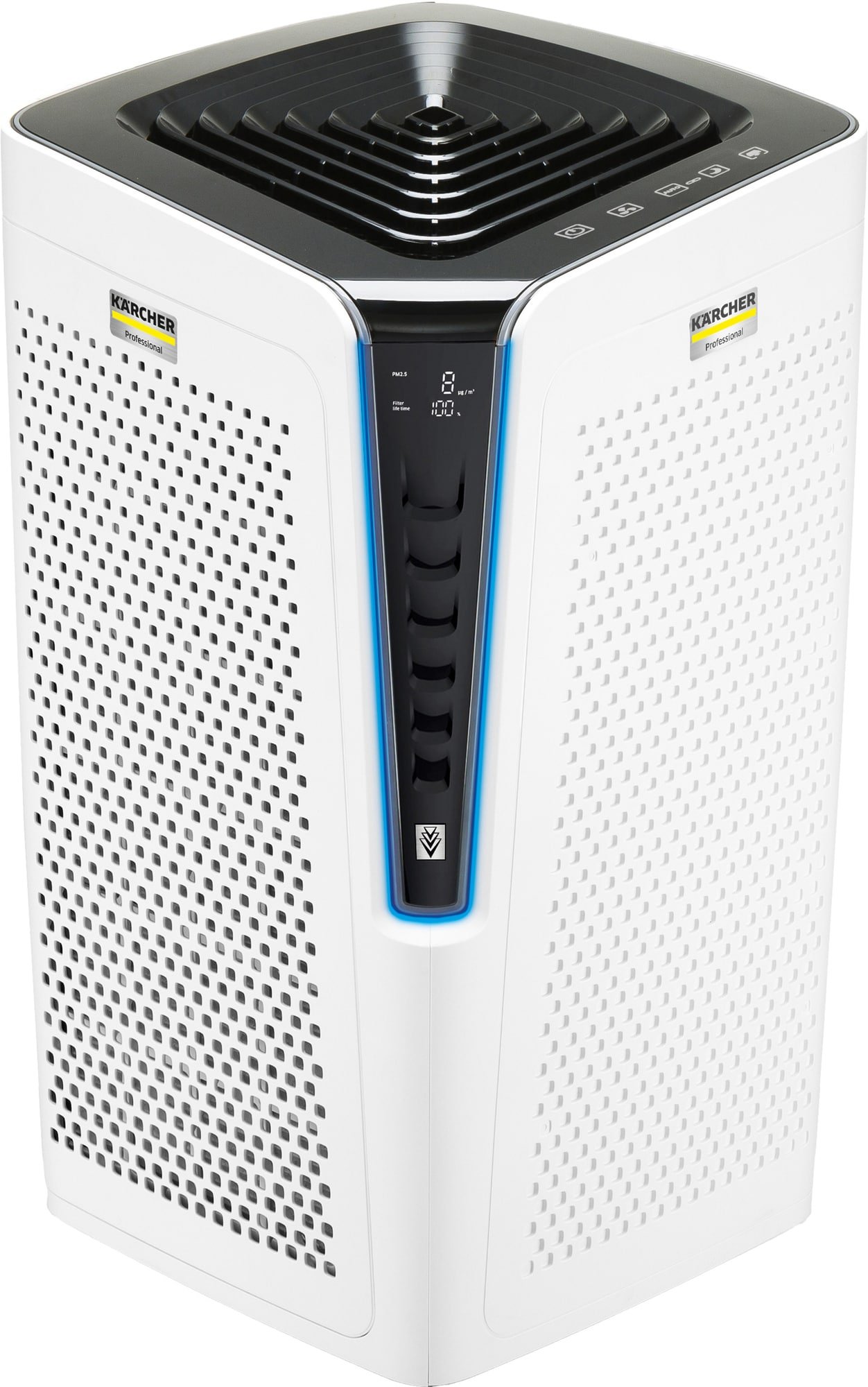 Kärcher AF 100 H13 luftrenseren 10248120 er udstyret med lasersensorteknologi, automatisk tilstand, H13 og filtrering med aktivt kul, der garanterer fjernelse af patogener og aerosoler fra luften indendøre.