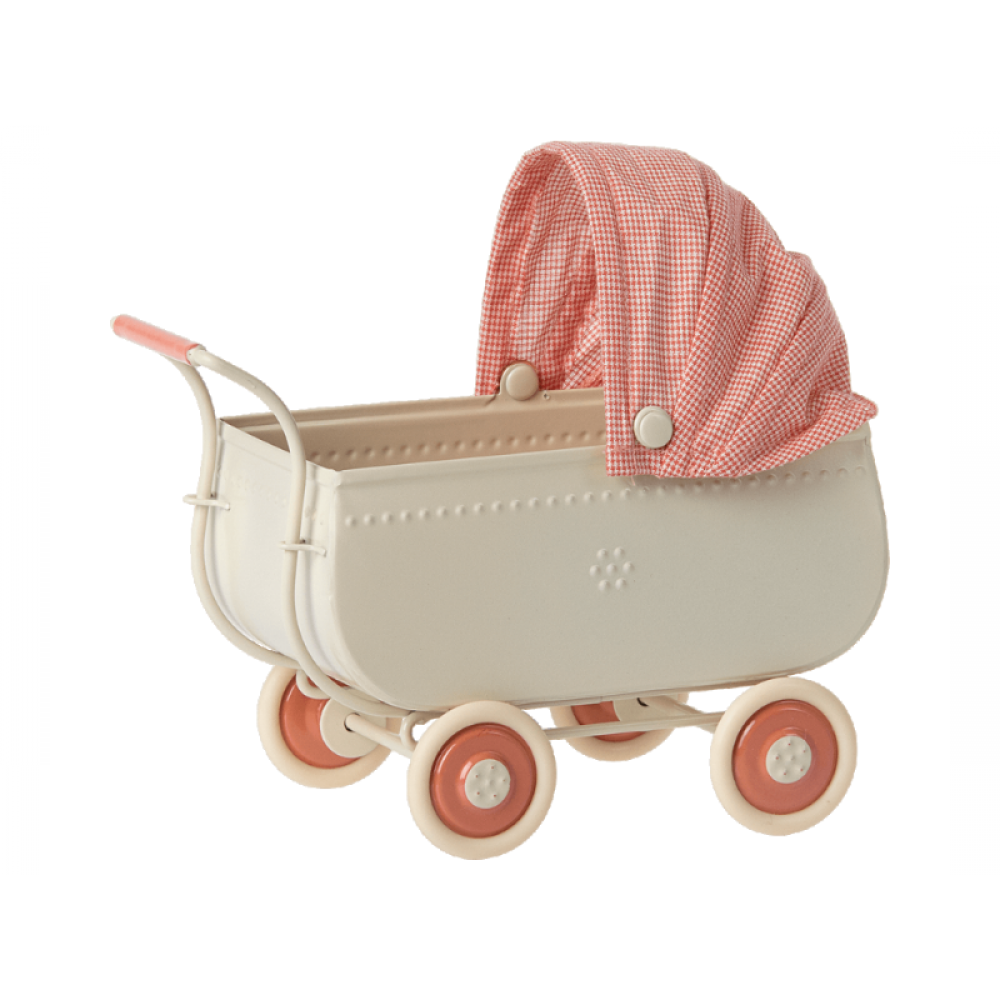 Maileg fineste barnevogn i farven koral i et cool vintagelook.