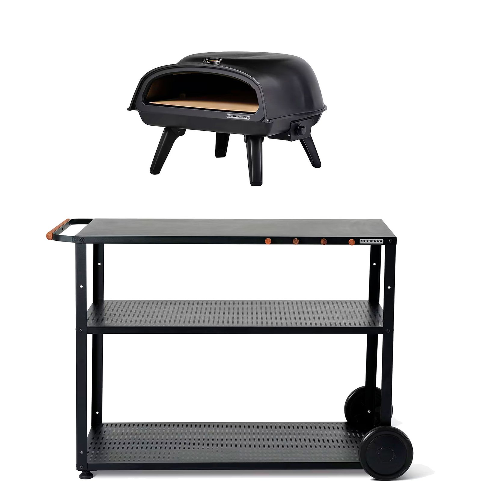 Skab en mere gennemtænkt og fleksibel madoplevelse udendørs med denne pakke fra Muurikka, hvor en gasdrevet pizzaugn 16″ kombineres med en praktisk grillvogn. Sammen får du en løsning, der gør det nemmere at bage pizza med høj og jævn varme, samtidig