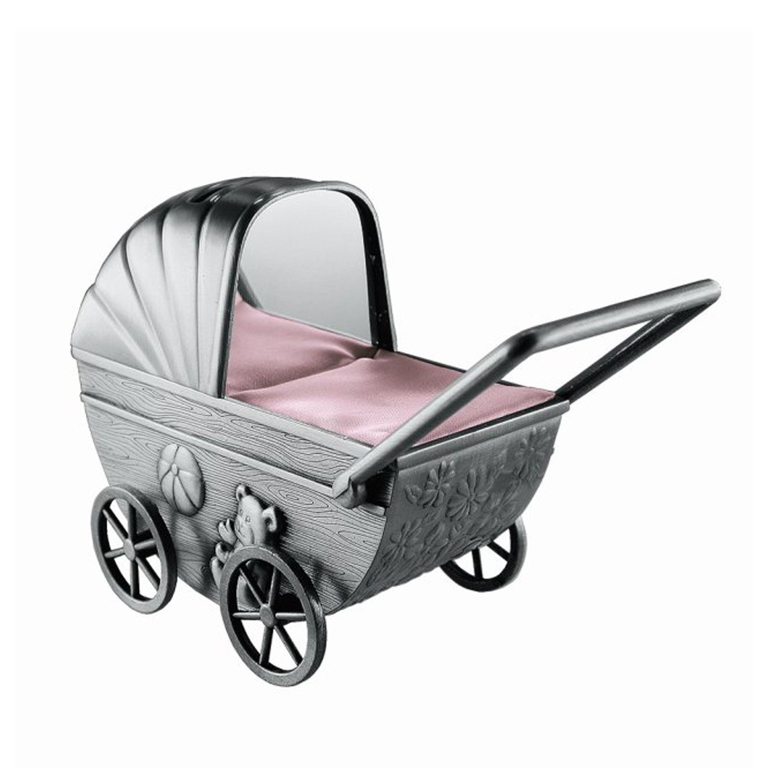 Barnevogn sparebøsse Fortinnet med lyserød pude Perfekt gave til en lille pige Nordahl Andersen Design Gratis gravering Sparebøsse Barnevogn til den lille pige. En sjov gaveidé til den lille ny, kunne denne mini barnevogn være. Sparebøssen kan lasergrave