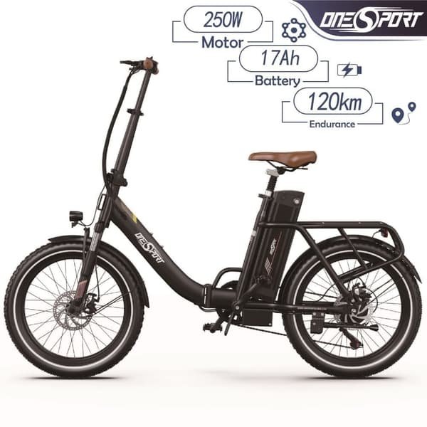 Be the first to review “Onesport OT16, 17Ah batteri, 20*3″ tommer dæk, 250W motor, rækkevidde 120 km, elcykel-sort”