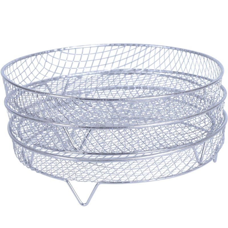 Optimer din Airfryer med vores 3-lags runde rist i stålGør din madlavning i airfryeren mere effektiv og alsidig med vores smarte 3-lags runde rist. Denne rist er designet til at maksimere pladsen i din airfryer, så du nemt kan tilberede flere retter samti