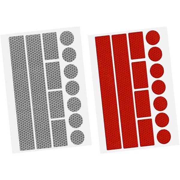 Forskellige størrelser til hver brug Egnet: Sættet med 26 selvklæbende reflektorer indeholder 14 runde (25 mm), 4 store rektangulære (190×25 mm) og 8 små lette rektangulære klistermærker (45×25 mm). (Bemærk!! Prøv denne indsættelse én gang. Gentagen vedhæftning kan påvirke produktets klæbrighed)