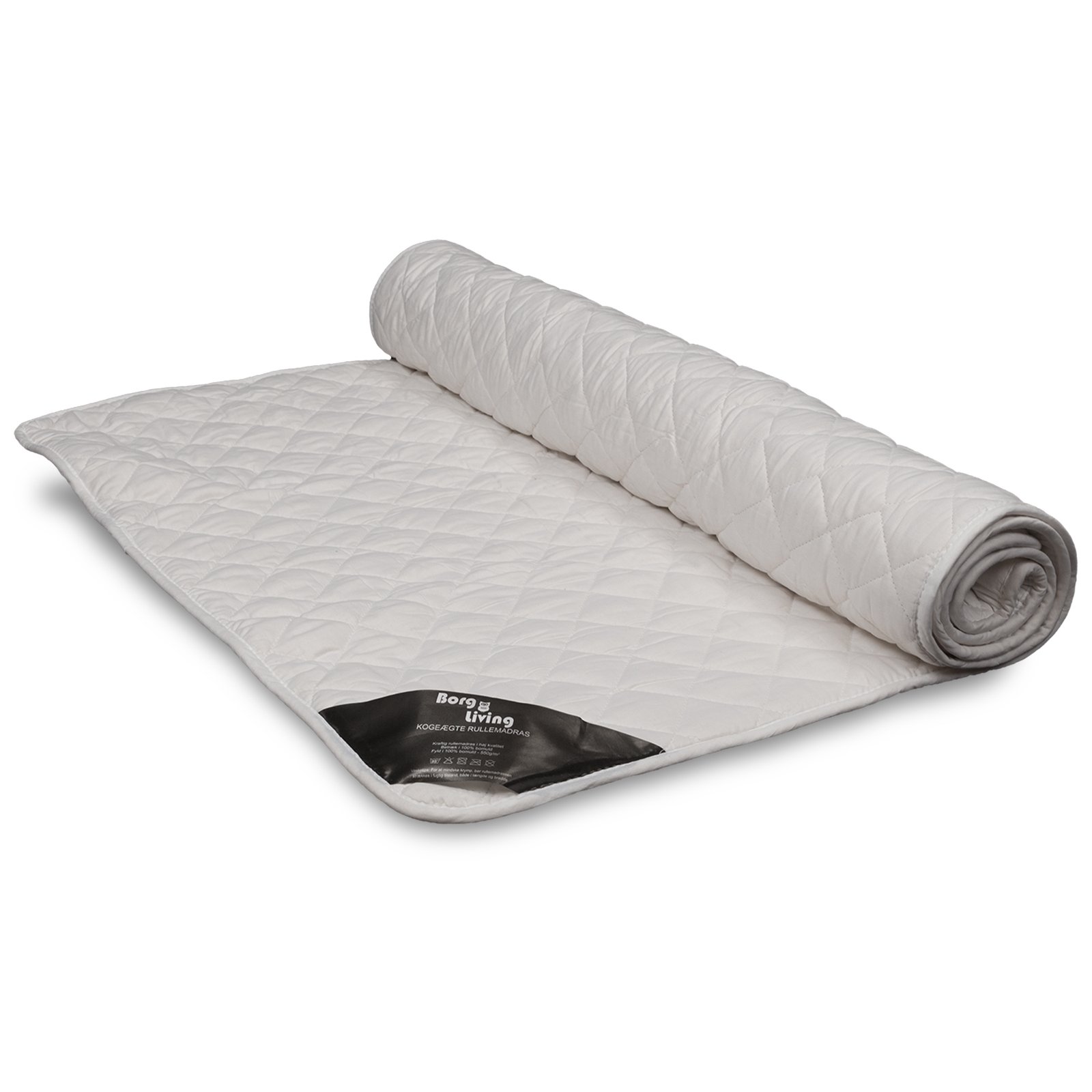 Borg Living rullemadras til barnevognBorg Livings kogeægte rullemadras er i høj kvalitet. Rullemadrassen passer til en madras eller topmadras. Formålet med en rullemadras er, at skåne din madras og/eller topmadras mod fugt, snavs og bakterier, derfor kaldes en rullemadras oftest også for en madrasbeskytter eller skånemadras. Rullemadrassen er udstyret med elastikker i hjørnerne, der sikrer, at den forbliver fast på din topmadras. Dette forhindrer rullemadrassen i at glide eller rulle sammen, hvilket sikrer en ubrudt og rolig søvn. Kogeægte bomuld har en god holdbarhed og kan modstå høje vasketemperaturer. Det er blødt, åndbart og allergivenligt, hvilket sikrer en behagelig og sund søvn.
