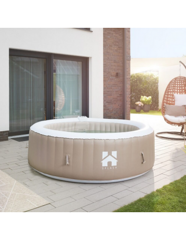 SPLASH Oppusteligt udendørs spa i et design med plads til op til 6 personer. Spabadet måler 65 cm i højden og 208 cm i ydre diameter og 160 cm i indre diameter. Spabadet kommer med dække og puster sig selv op blot ved tryk på en knap.