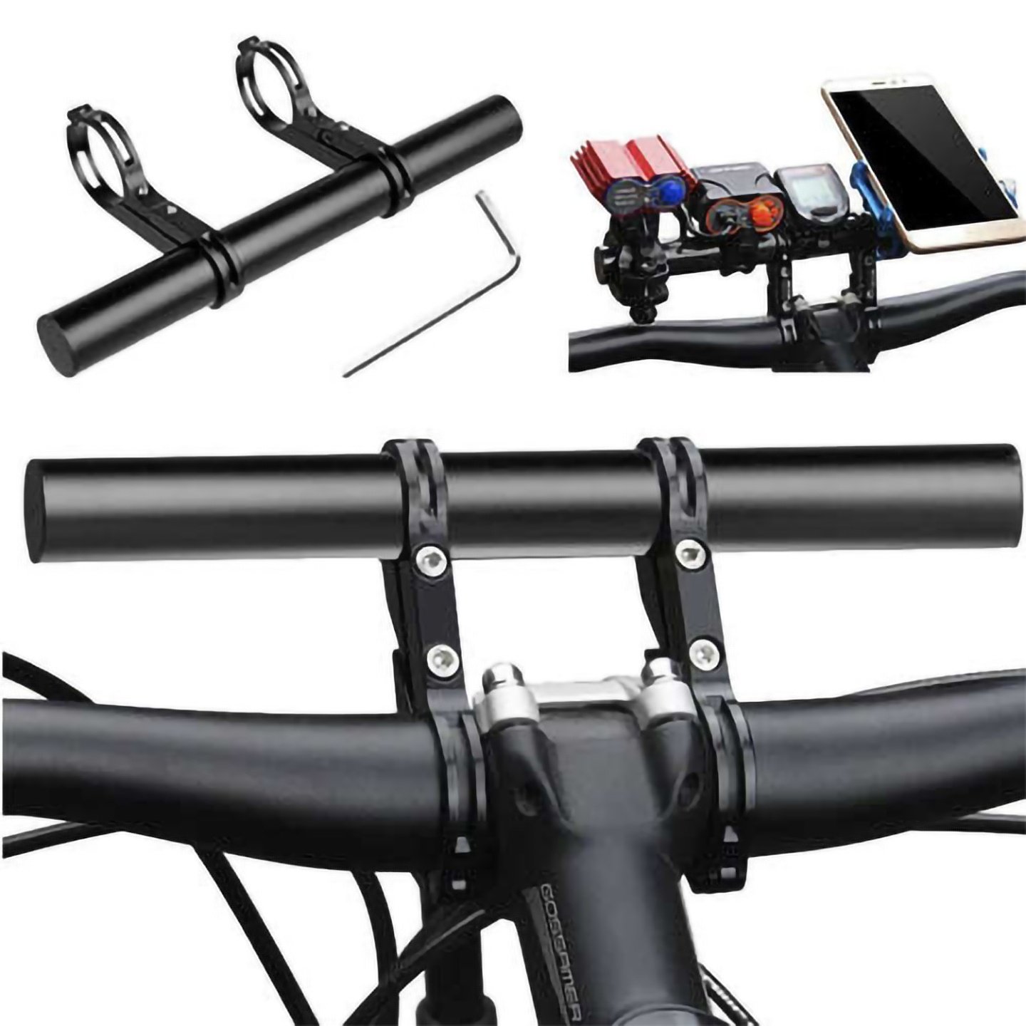 Vejrbestandig og nem at montere styrforlænger, der giver ekstra plads til vigtige tilbehør – passer til både cykler og løbehjul! Uanset om du cykler gennem byen eller kører på dit løbehjul, gør denne styrforlænger din rejse mere smidig og organiseret. Med en forlængelse på op til 20 cm giver denne forlænger betydeligt mere plads til at montere nødvendige håndtag og enheder, som ellers ikke får plads på standardstyret, såsom mobilholder og tællere. Styrforlængeren er let og nem at montere, hvilket gør, at hvem som helst kan installere den hurtigt og uden besvær. Den dobbelte håndtagsdesign sikrer, at forlængelsen sidder fast og ikke ryster, hvilket giver en sikker og stabil oplevelse. Fremstillet af holdbare og vejrbestandige materialer, tåler denne styrforlænger hårde vejrforhold, inklusive regn. Du kan stole på, at den fungerer pålideligt uanset vejret, hvilket gør den til et uvurderligt tilbehør til alle dine cykel- og løbehjulseventyr. Stabil med dobbelt håndtagsdesignEkstra plads til nødvendige tilbehørMateriale: Aluminium, plastStørrelse: 20 cmDiameter: 2 cmInstallationsdiameter: 2-3,5 cmMedfølger: Styrforlænger, 2 håndtag, unbrakonøgle til montering